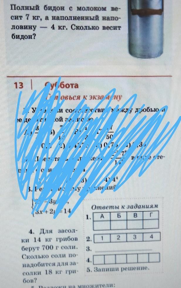 7-4=3 кг- весит половина молока в бидоне