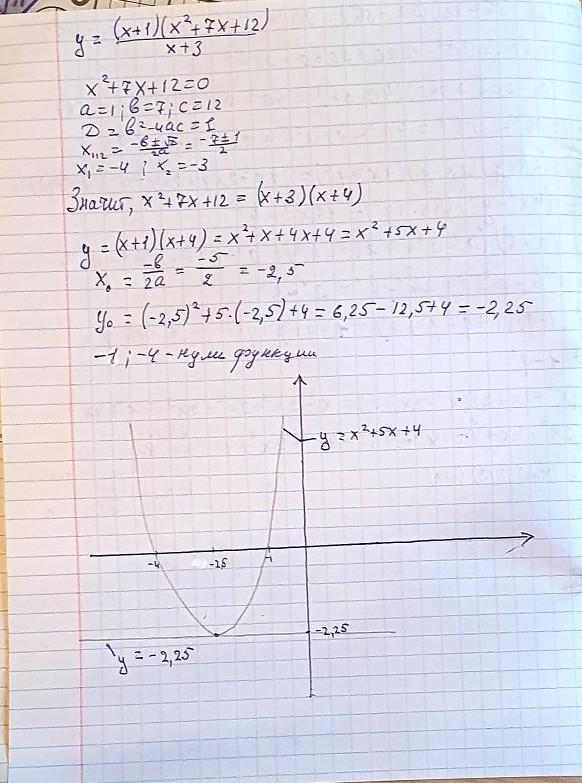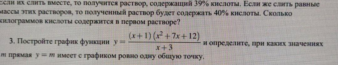 х не равен -3( т.к знаменательне равен нулю). в таком случае, у=-2 и точка (-3;-2) на параболе является выколотой. Таким образом, прямая у= -2 пересекает параболу только в одной точке. Ответ: m= -2,25; m=-2