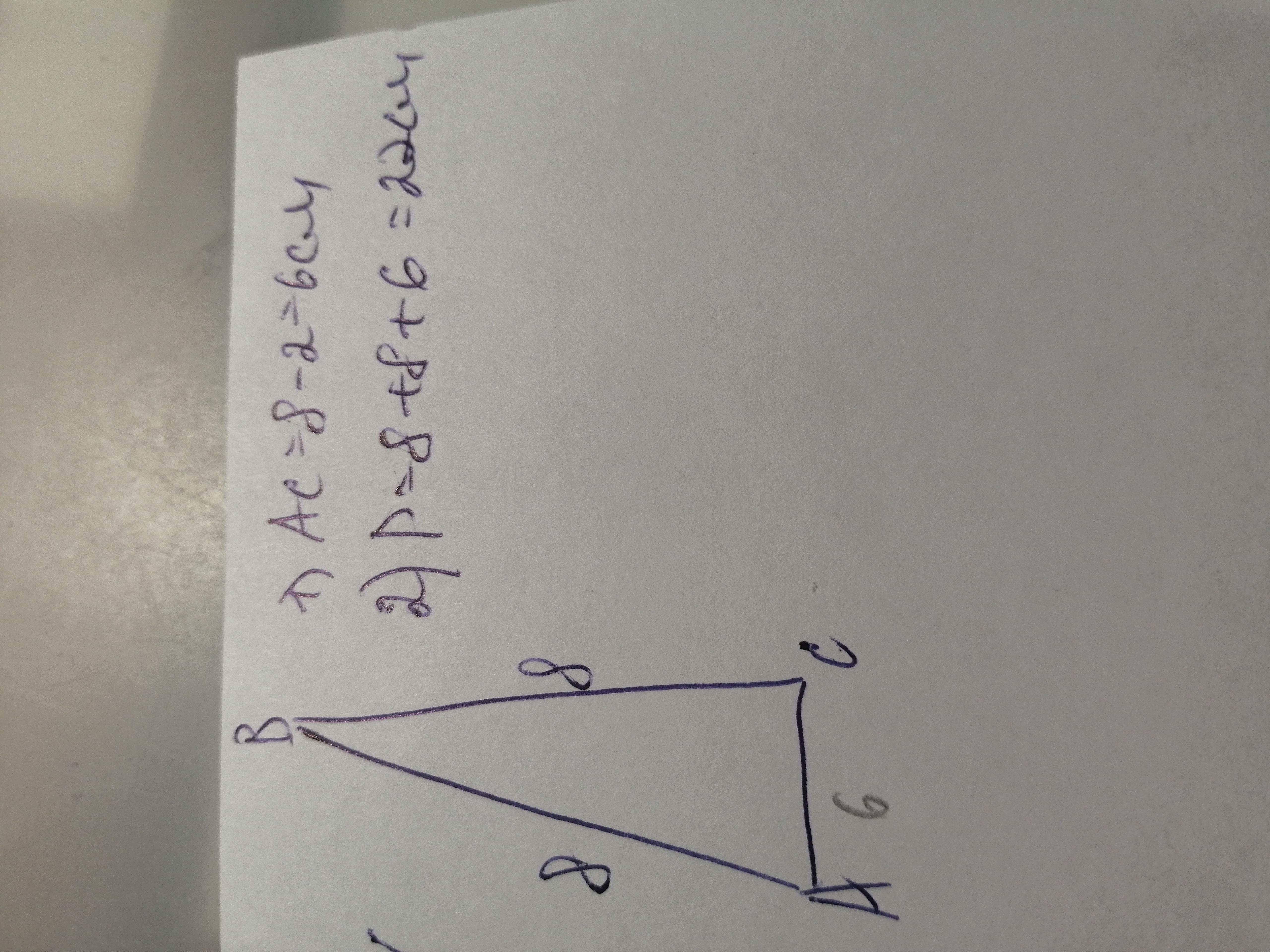 1) 8-2=6 (см) — основа равнобедренного треугольника.