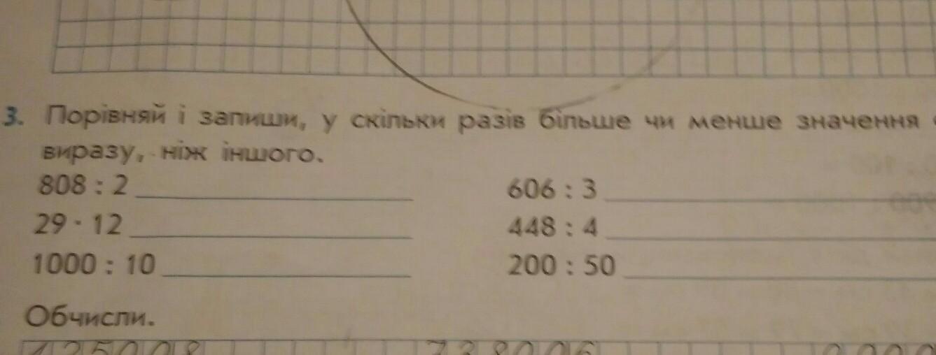 ЗАДАНИЕ 3. Порівняй і запиши, у скільки разів більше чи менше значення одного виразу, ніж іншого.