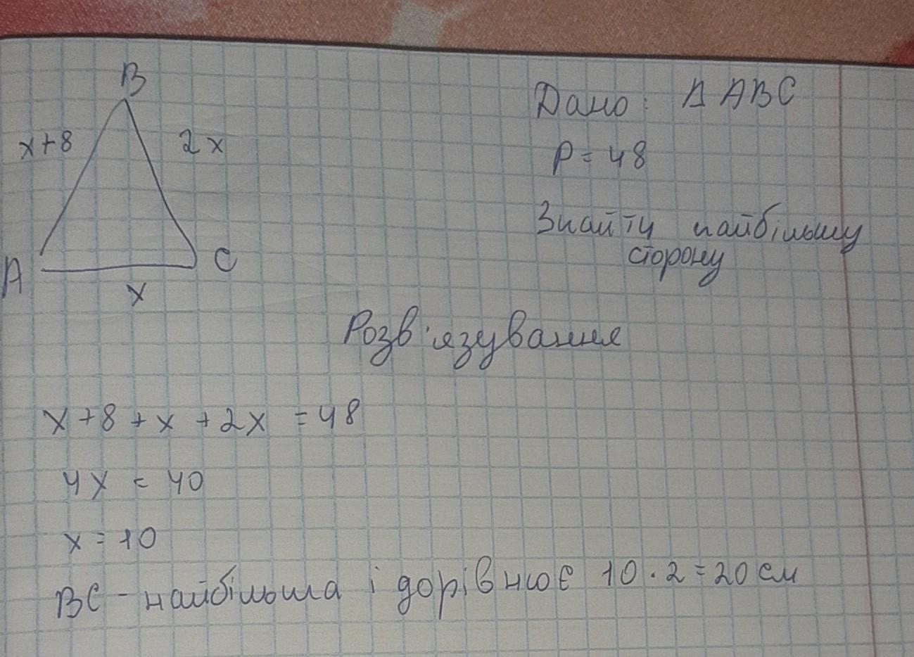 триугольники нарисуй более логичными, типа меньше сторона, больше, в соответствии с условием, это на решение не влияет, чисто для эстетической формы