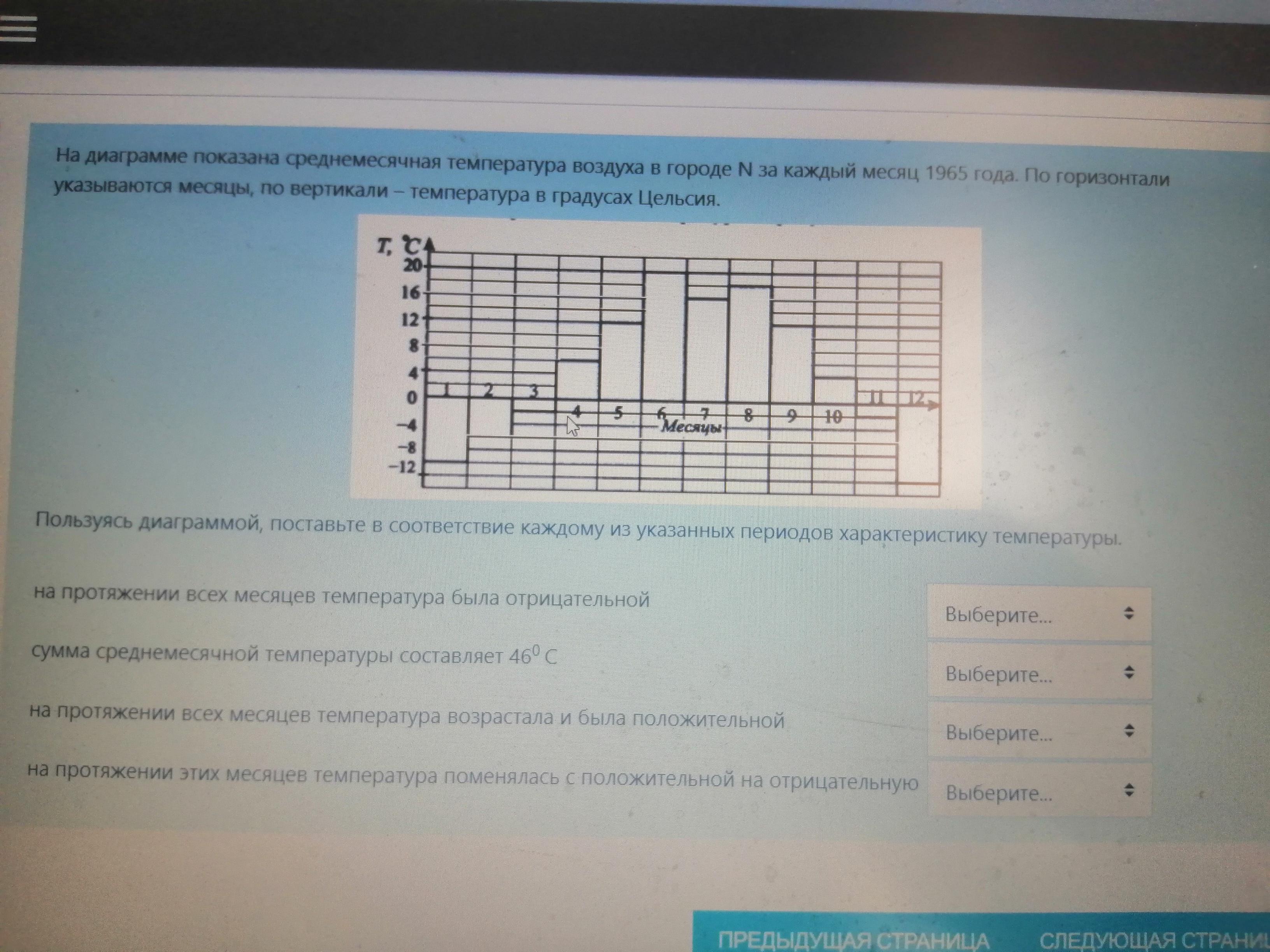 На диаграмме показана среднемесячная температура воздуха в городе N
