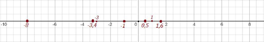 Пошаговое объяснение: -8; -3,4; -1;0,5; 1,6.