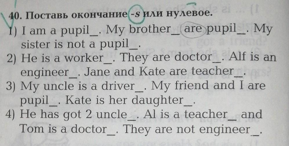 1) I am a pupil. My brothers are pupils. My sister is not a pupil.