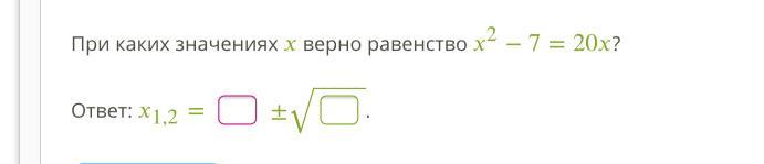 x² -20x -7 =0 ⇒ x ₁ , ₂ = 10 ± √ (10² - (-7) ) x ₁ , ₂ = 10 ± √107