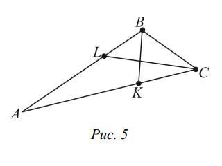 Биссектрисы двух внешних и внутреннего угла треугольника пересекаются в одной точке (L).