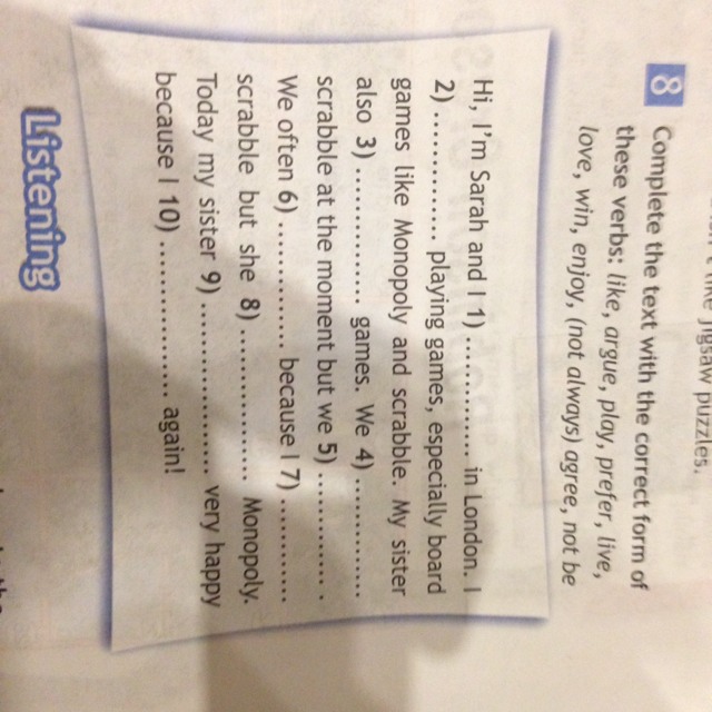 not always agree 6 argue 7 love 8 prefers 9 is not 10 am winning / have won