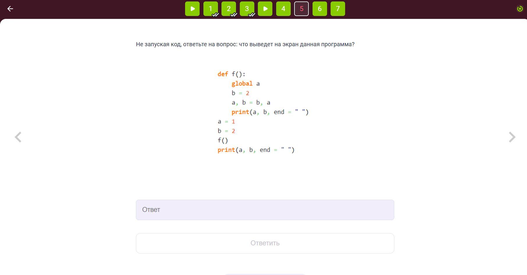 Не запуская код, ответьте на вопрос: что выведет на экран данная программа?