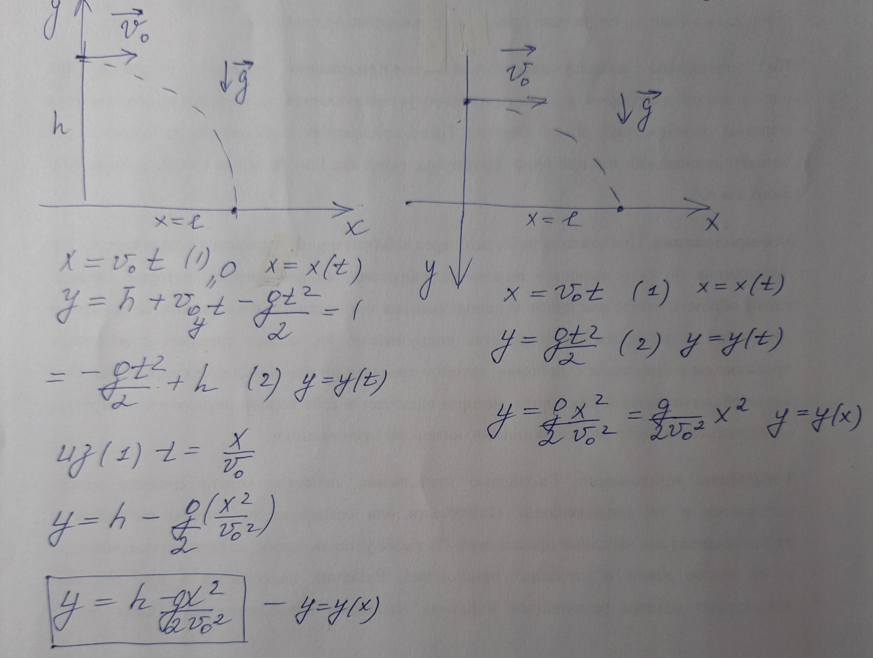 С вышки высотой 150 метров стеляют из пневматического оружия. Начальная скорость равна 40 м/с. Найдите х(t), y(t), y(x). Там надо разобрать два случая: