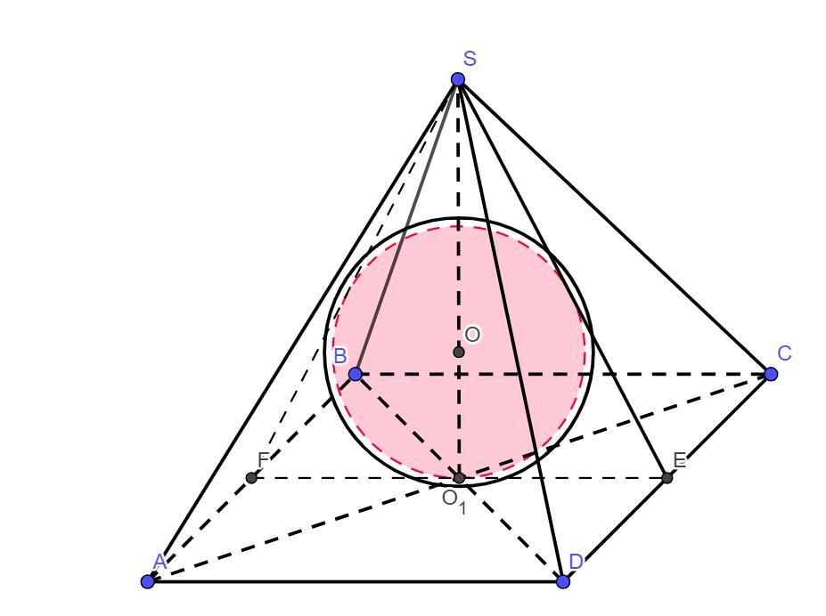 Радиус основания r = AD/2 = 10/2 = 5. Высота пирамиды H определим по теореме Пифагора из треугольника SO₁E, предварительно вычислив апофему SE