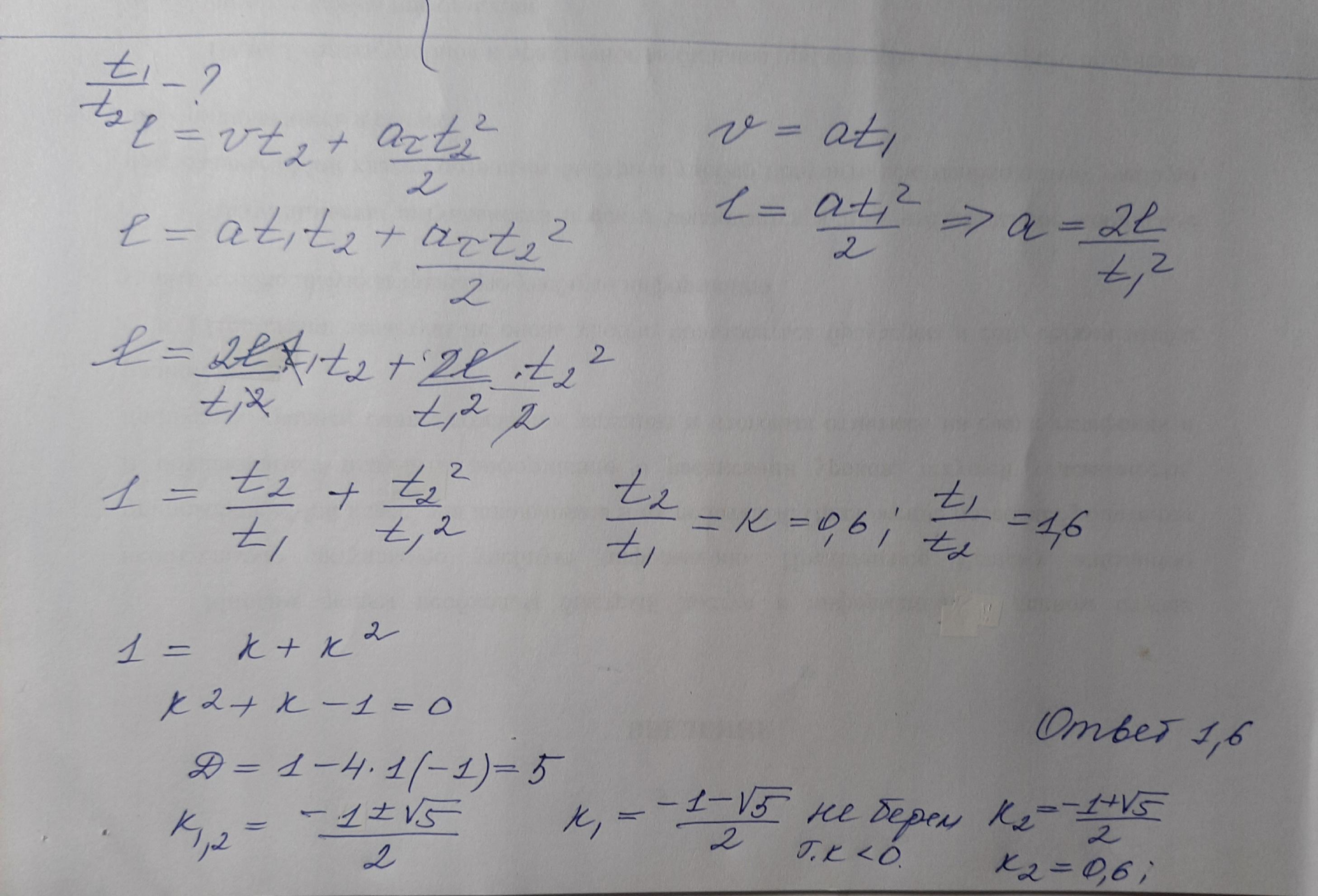 Материальная точка начинает движение с нулевой начальной скоростью и движется по окружности с постоянным положительным тангенциальным ускорением. Во сколько раз время, за которое она совершит первый полный оборот по окружности, больше времени второго полного оборота? Ответ округлите до десятых.