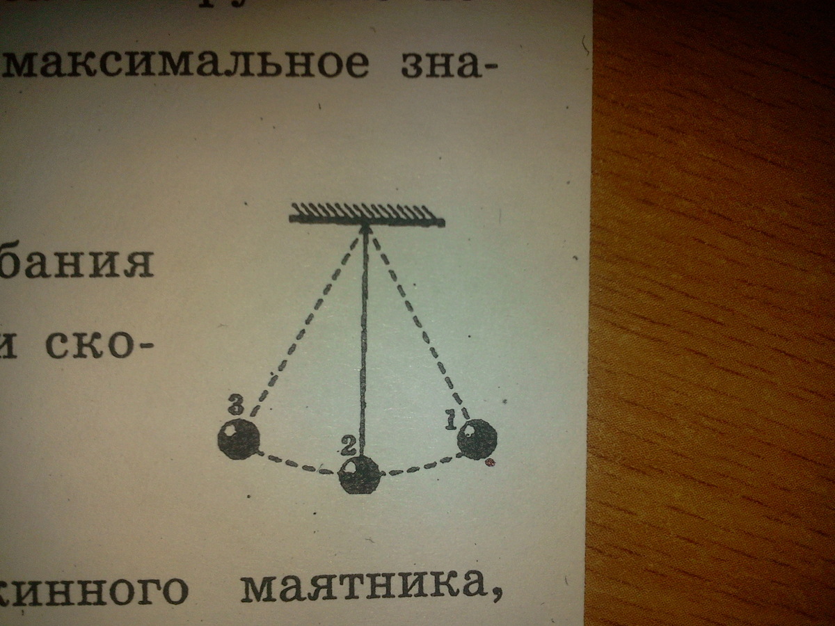Груз на нити совершает свободные колебания между точками 1 и 3. В каком положении скорость груза будет максимаьной?