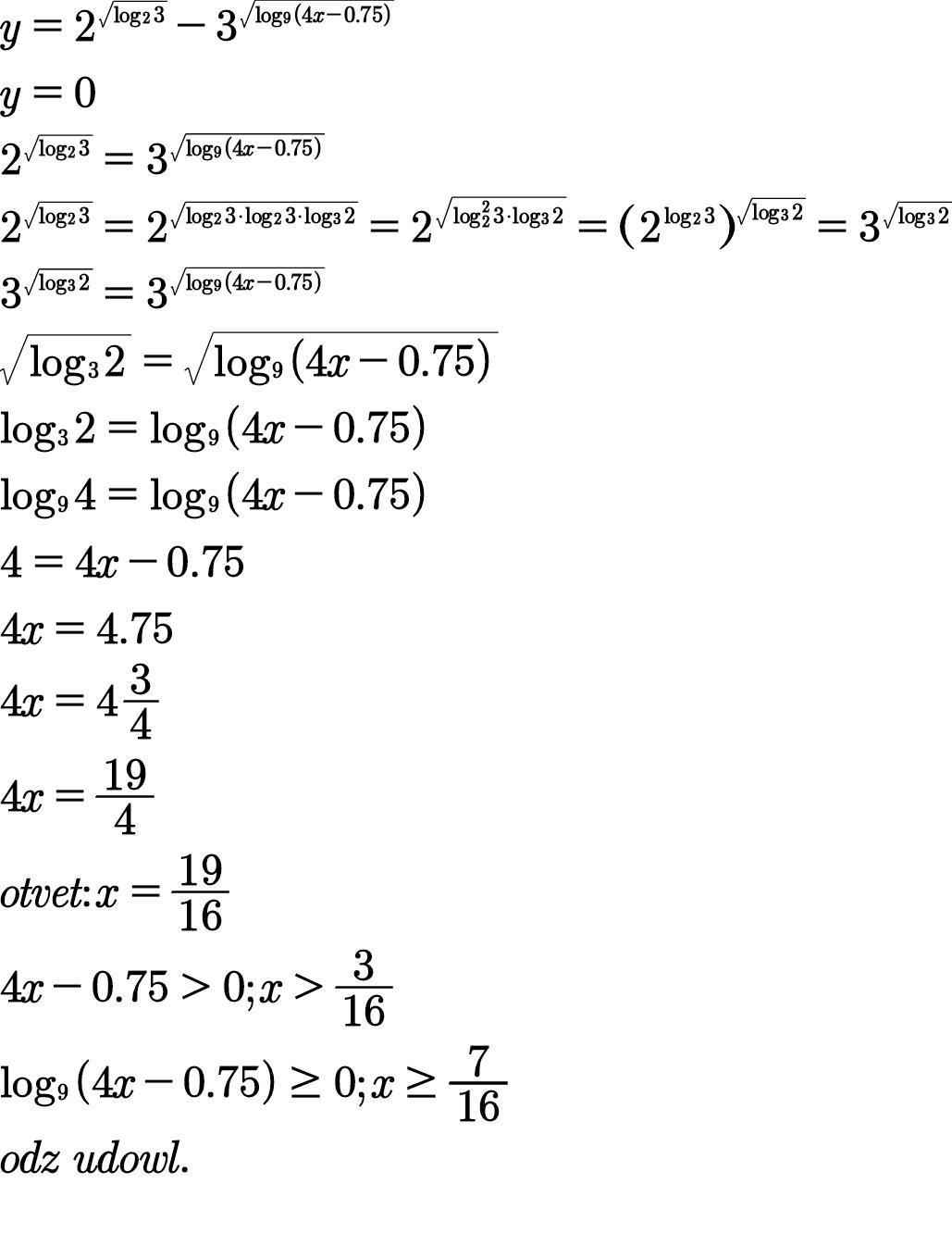 y= 2^Корень квадратный из log2 (3) - 3^Корень квадратный log9 (4x-0.75)