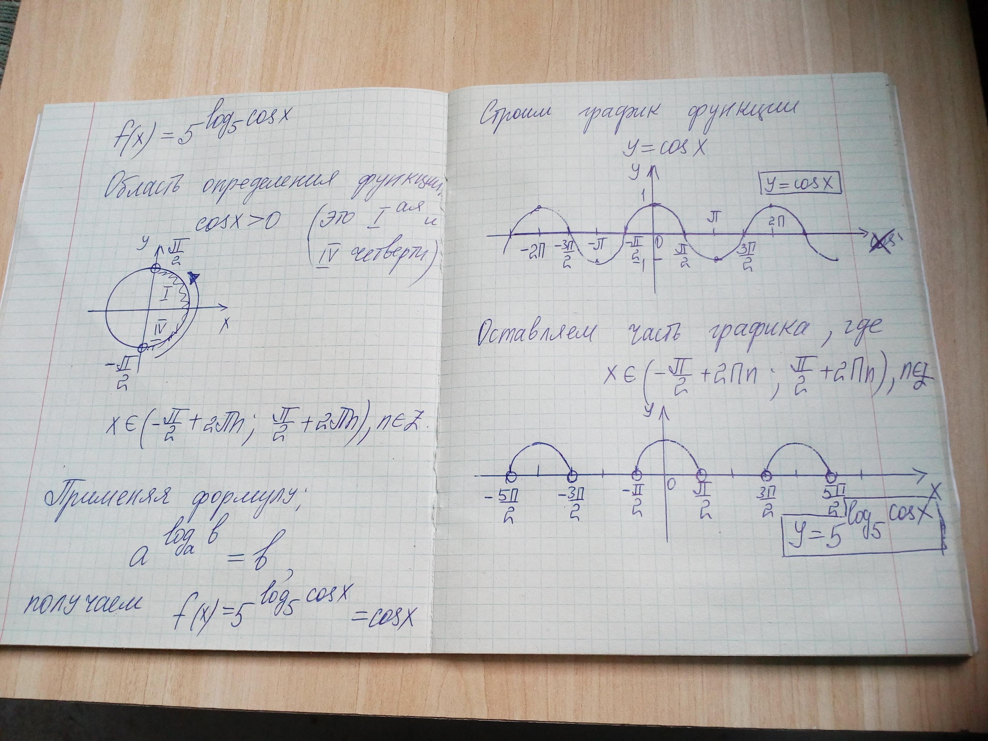 f(x)=cosx при cosx>0. Строишь только то что выше оси Ох. Точки лежащие на оси Ох пустые