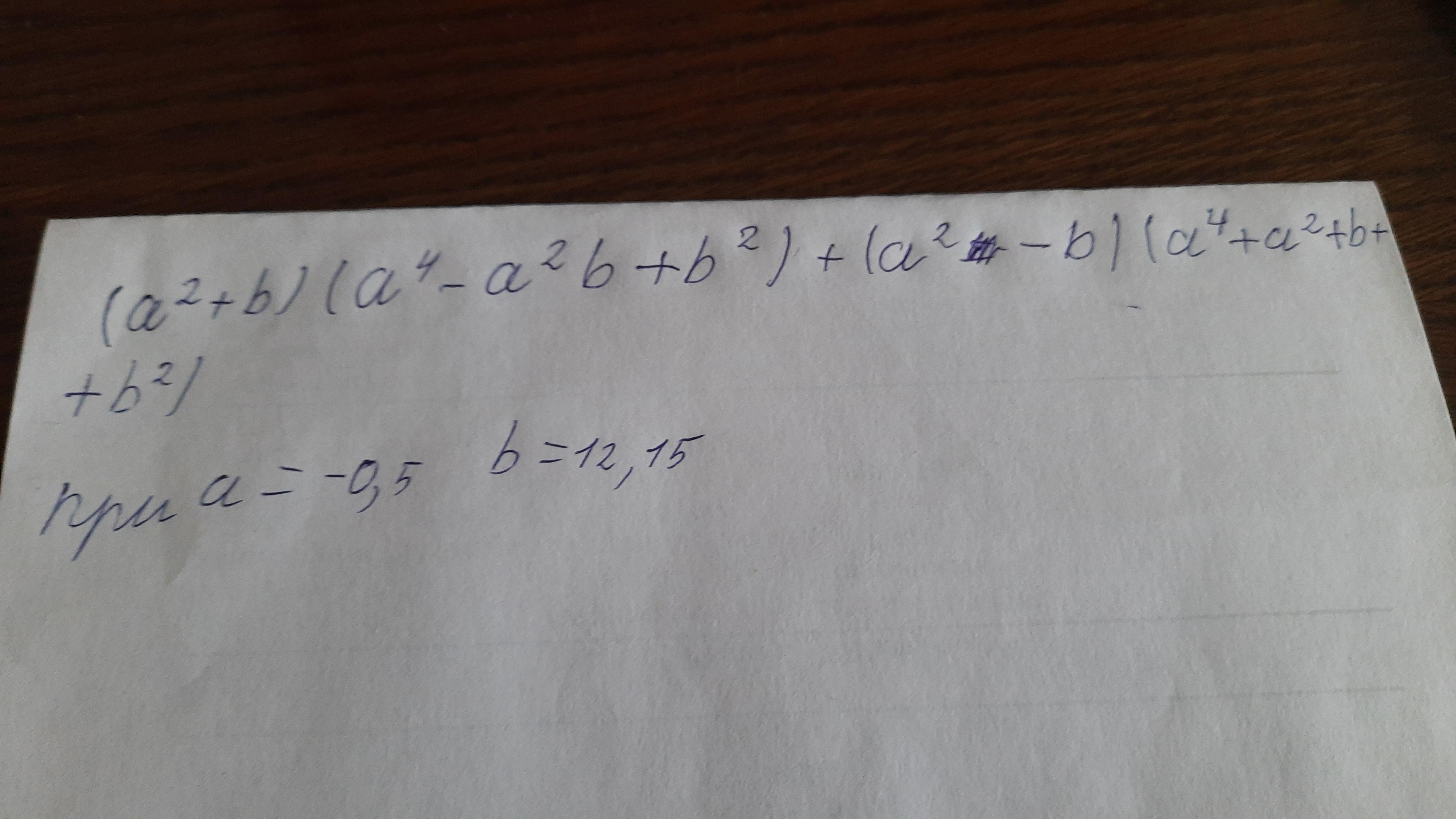 ( a² + b )( a⁴ - a²b + b² ) + ( a² - b )( a⁴ + a²b + b² ) = ( a²)³ + b³ + ( a²)³ - b³=