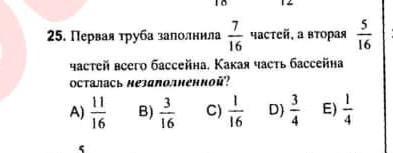 1)5/16+7/16=12/16 наполнится бассейн через 2 трубы