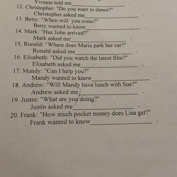 18. Andrew asked me whether Mandy would have lunch with Sue.