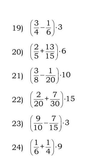 19. (3/4 - 1/6) * 3 = (9/12 - 2/12) * 3 = 7/12 * 3 = 7/4 = 1 3/4