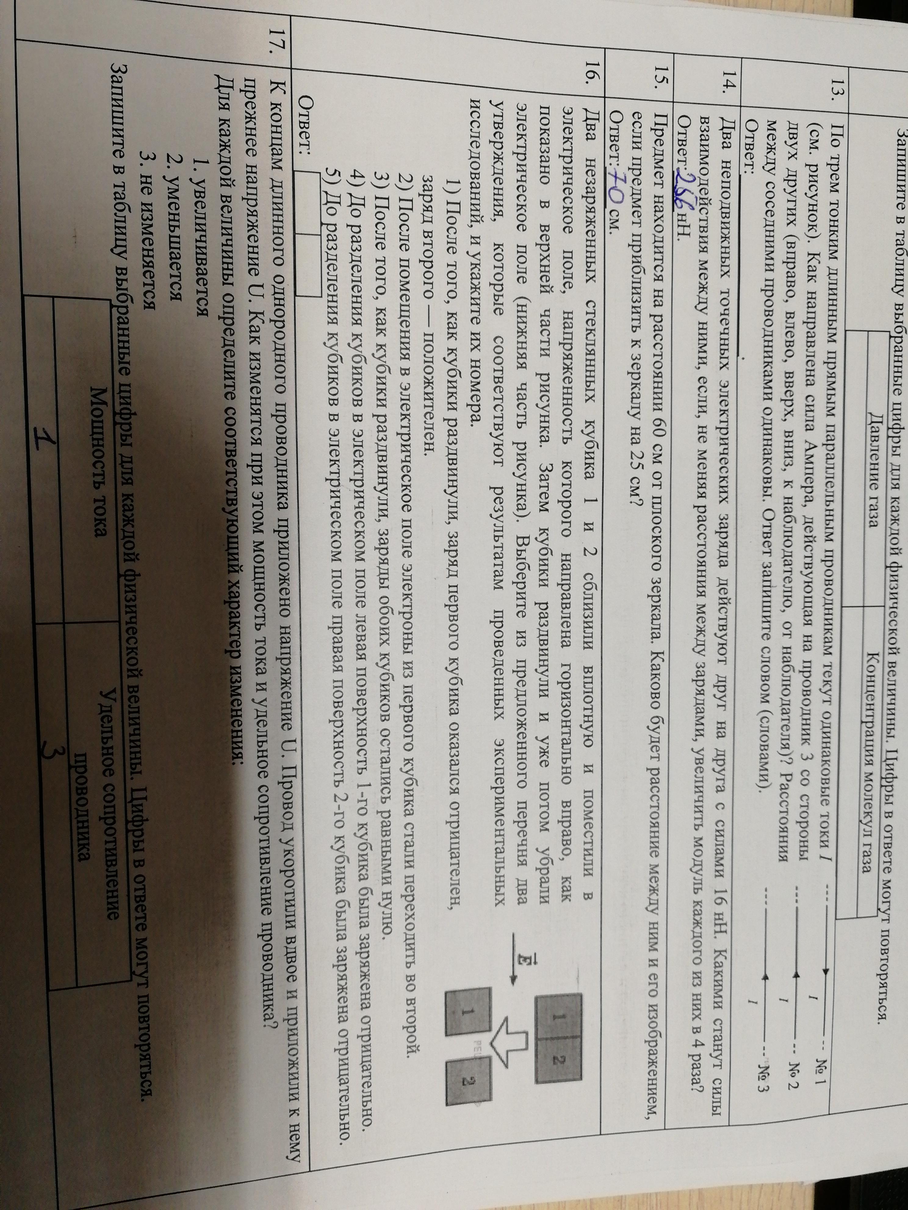 Два не заряжанных стеклянных кубика 1 и 2 сблизили вплотную и поместили электрическое поле, напряженность которого направлена горизонтально вправо, как показано верхней части рисунка затем кубики раздвинули и уже потом убрали электрическое поле как на нижней части рисунка выберите из предложеного перечня 2 утверждения, которые соответствует результатам проведенных экспериментальных исследований и укажите их номера. Фото прилагается.