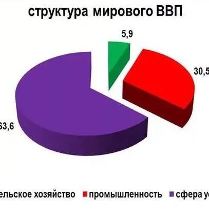 3) сельское хозяйство-6%, промышленность-30%, сфера услуг-64%.