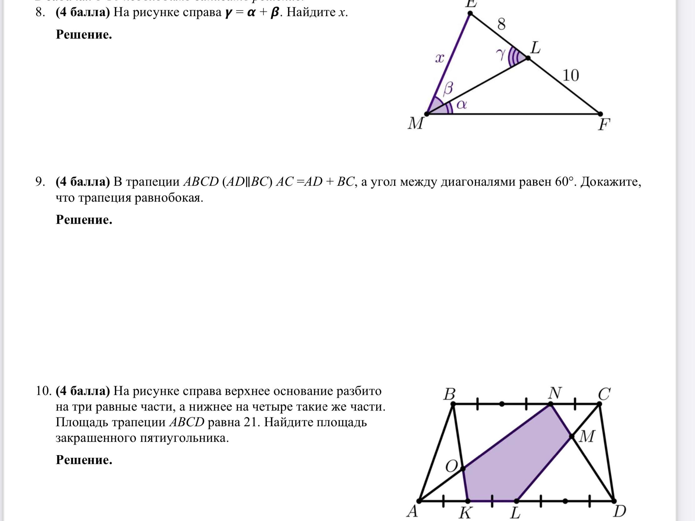 ⇒АВСD - равнобедренная трапеция (диагонали равны.