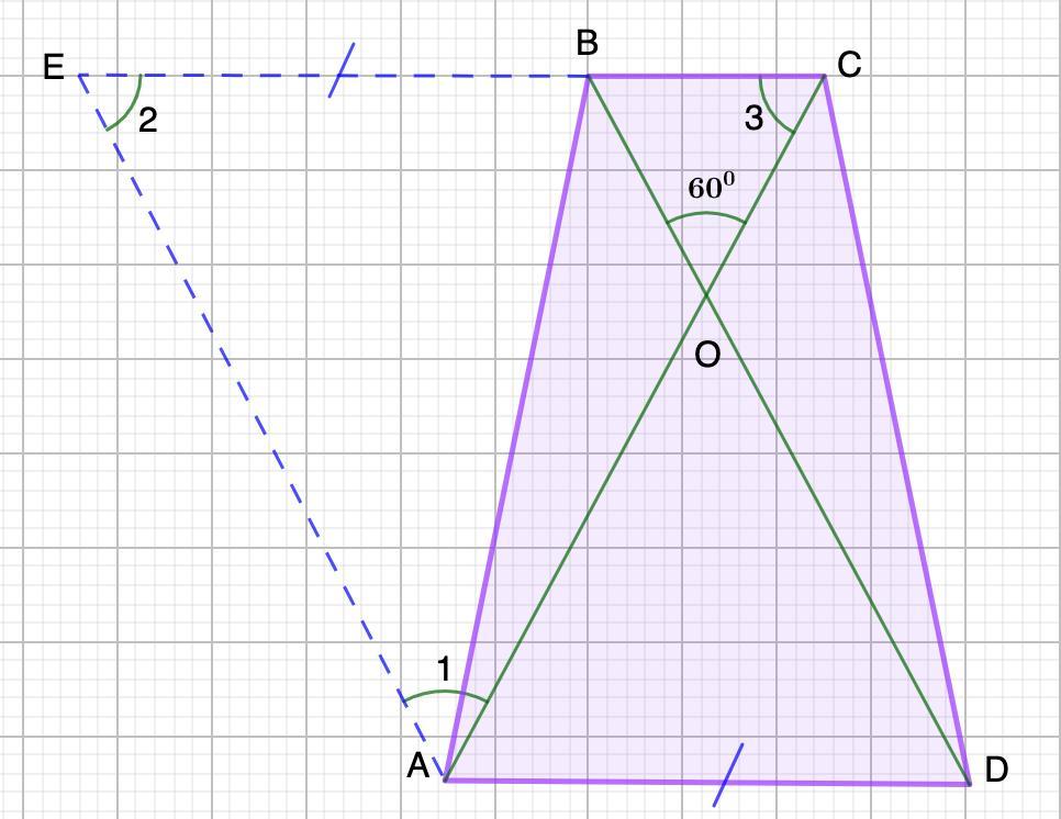 3. ∠ВОС=∠1=60° (соответственные при АЕ║ВD и секущей АС)