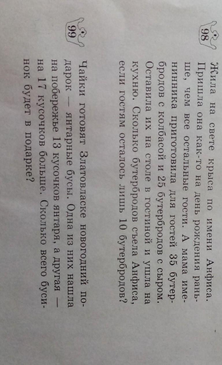98. 35+25=60 было всего. 60-10=50 съела. 99. 13+17=30 2 чайка. 13+30=43 всего