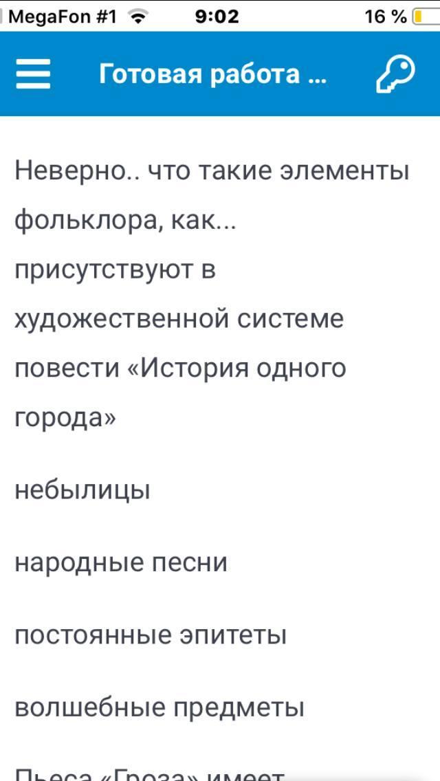 Неверно, что такие элементы фольклора, как... присутствуют в художественной системе повести «История одного города».