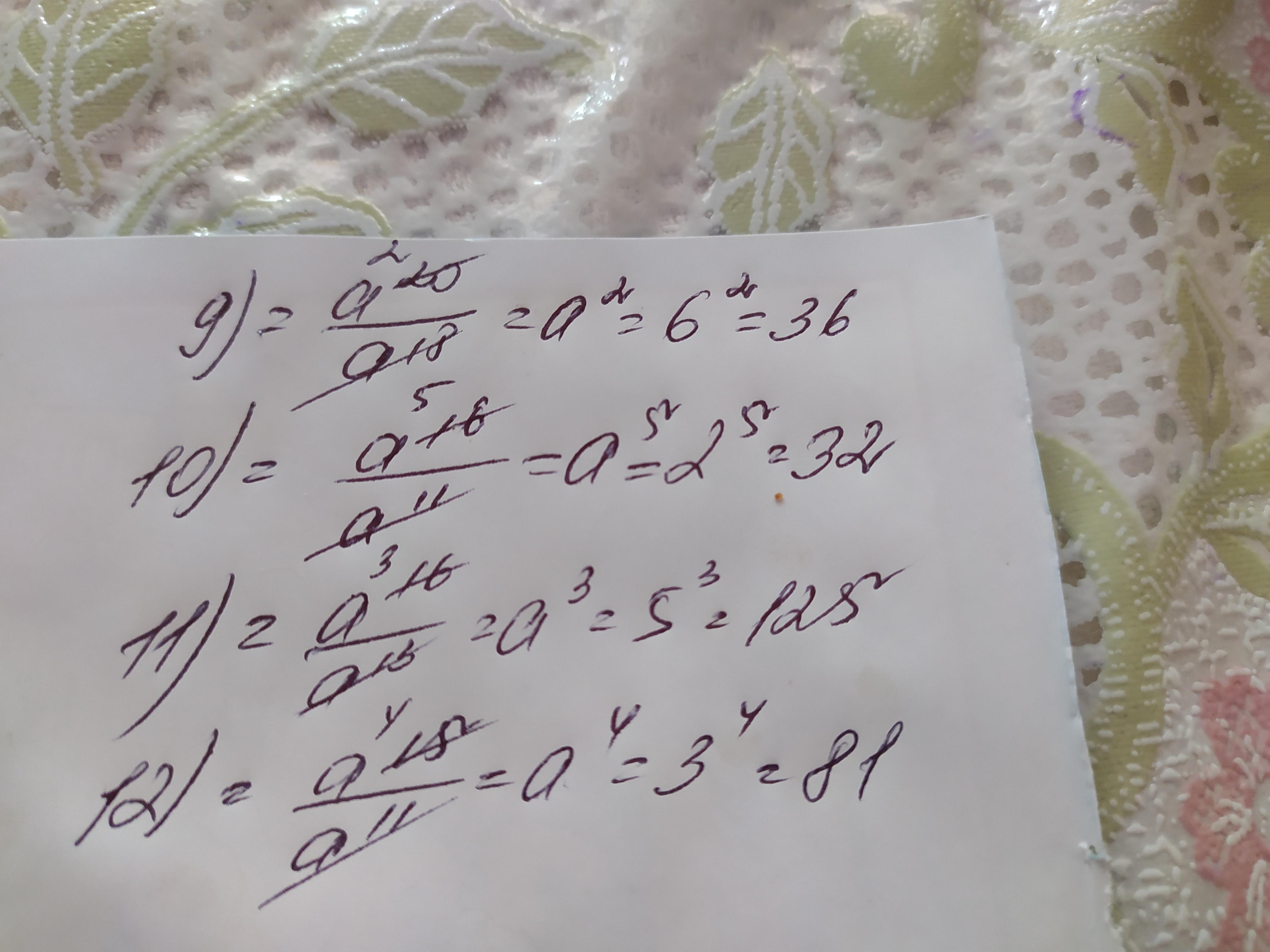 9) (a⁴)⁵/a¹⁸= a²⁰/a¹⁸=a²=6²=36