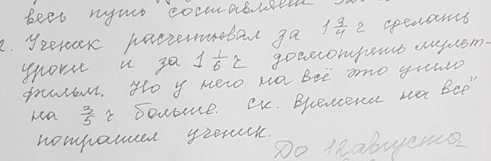 ученик расчитывал за 1 цел 3/4 сделать уроки и за 1 цел 1/6 досмотреть мультфильм . но у него на это все ушло на 3/5 с больше. сколько времени на это все потратил ученик