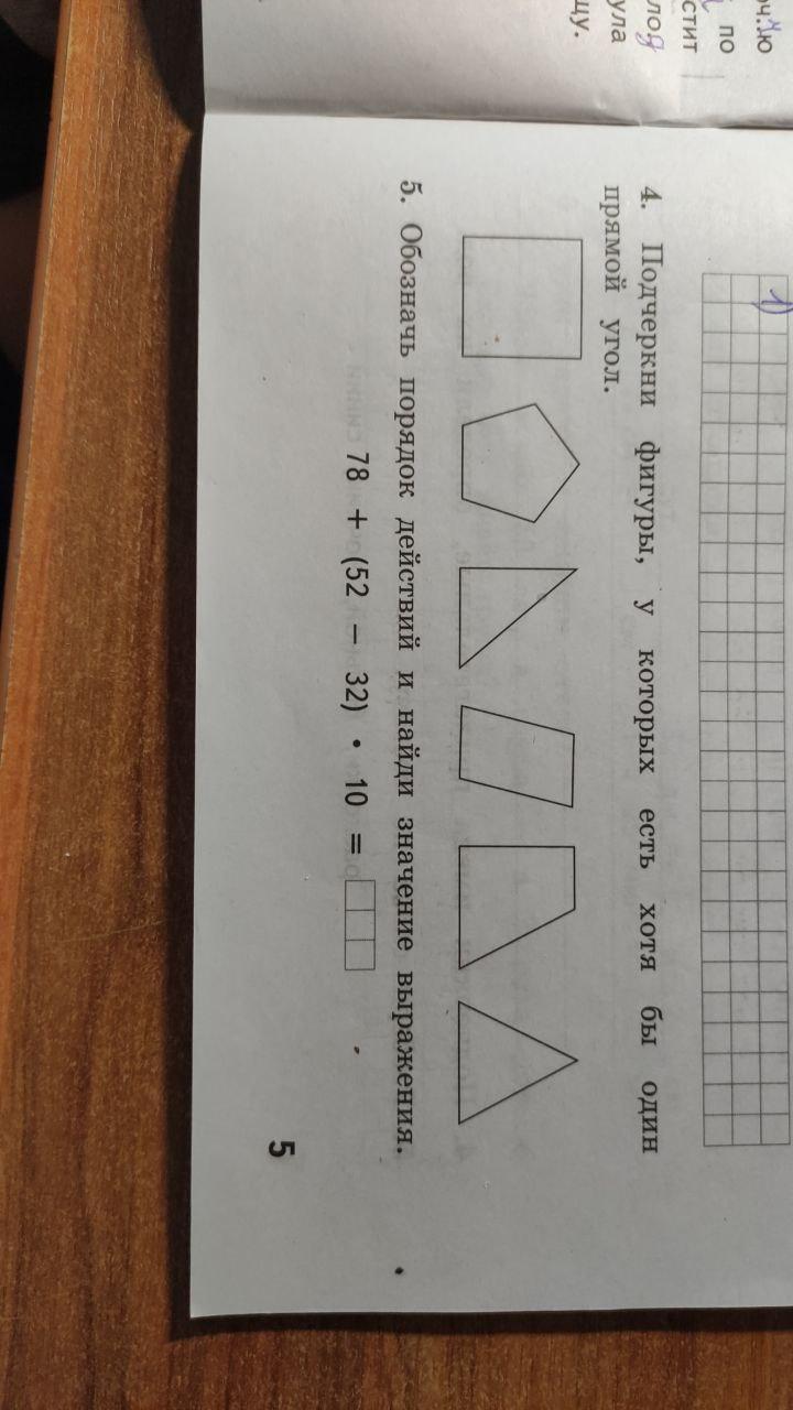 + Пятая фигура - прямоугольная трапеция. Есть один прямой угол. (подходит)