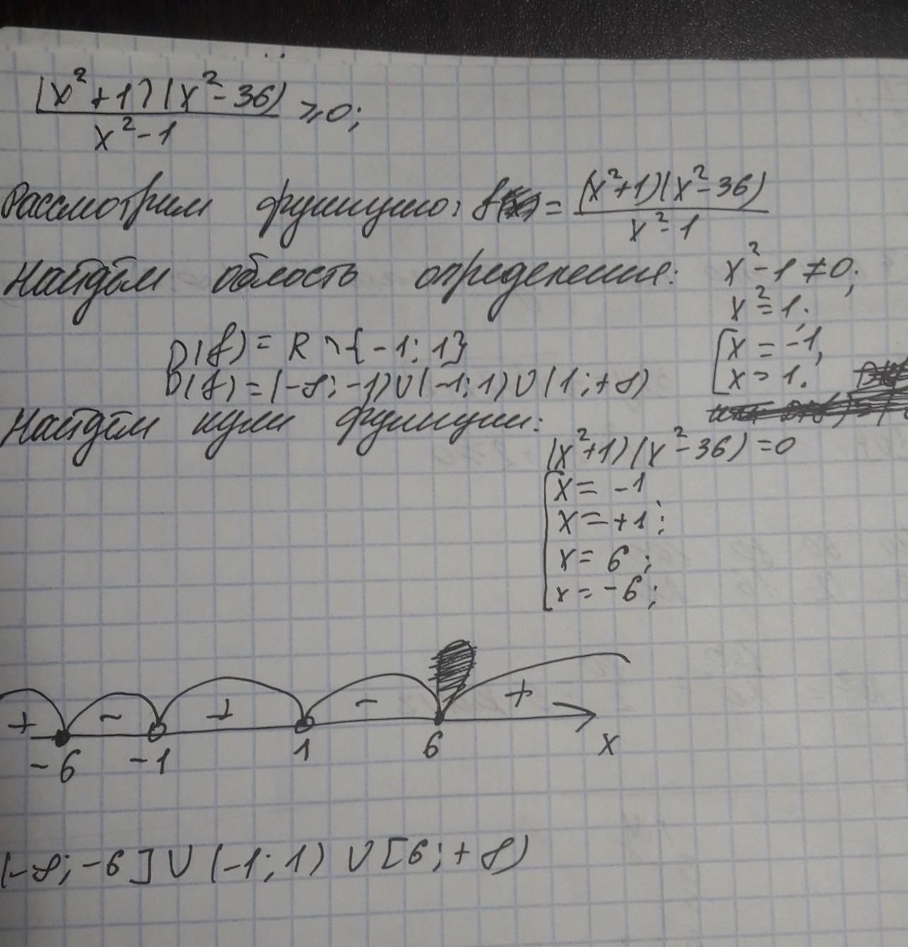 (-бесконечности; -6) (-1;1) (6; +бесконечности )