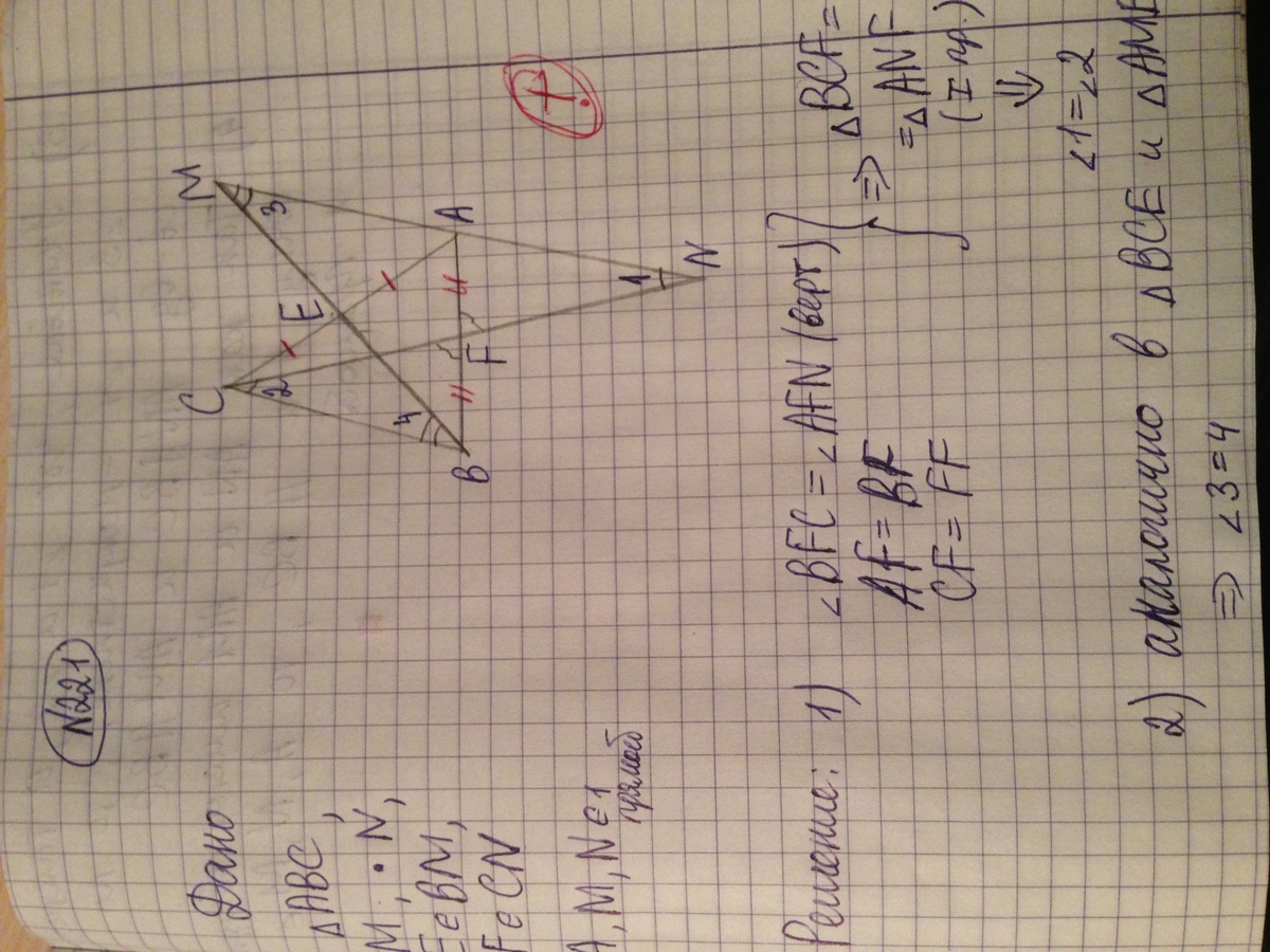 который по 2 сторонам и углу. Затем вы говорите что раз треугольники