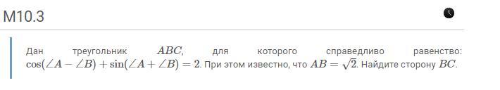 cos (∠A - ∠B) + sin (∠A + ∠B) = 2
