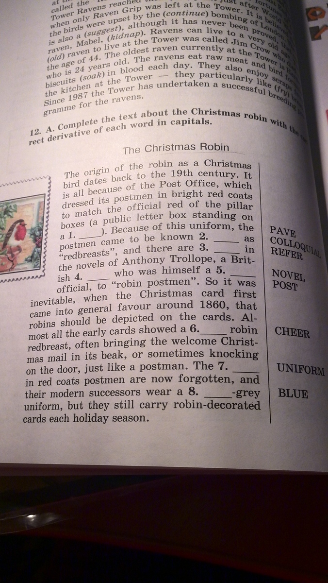 NOVELIST 5 POST OFFICE 6 CHEERFUL 7 UNIFORMED 8 BLUISH