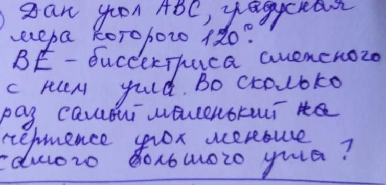 если дан угол 120°, то смежный с ним угол равен 180°-120° = 60°
