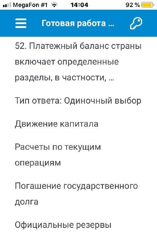 52. Платежный баланс страны включает определенные разделы, в частности рассчёта по текущим операциям.