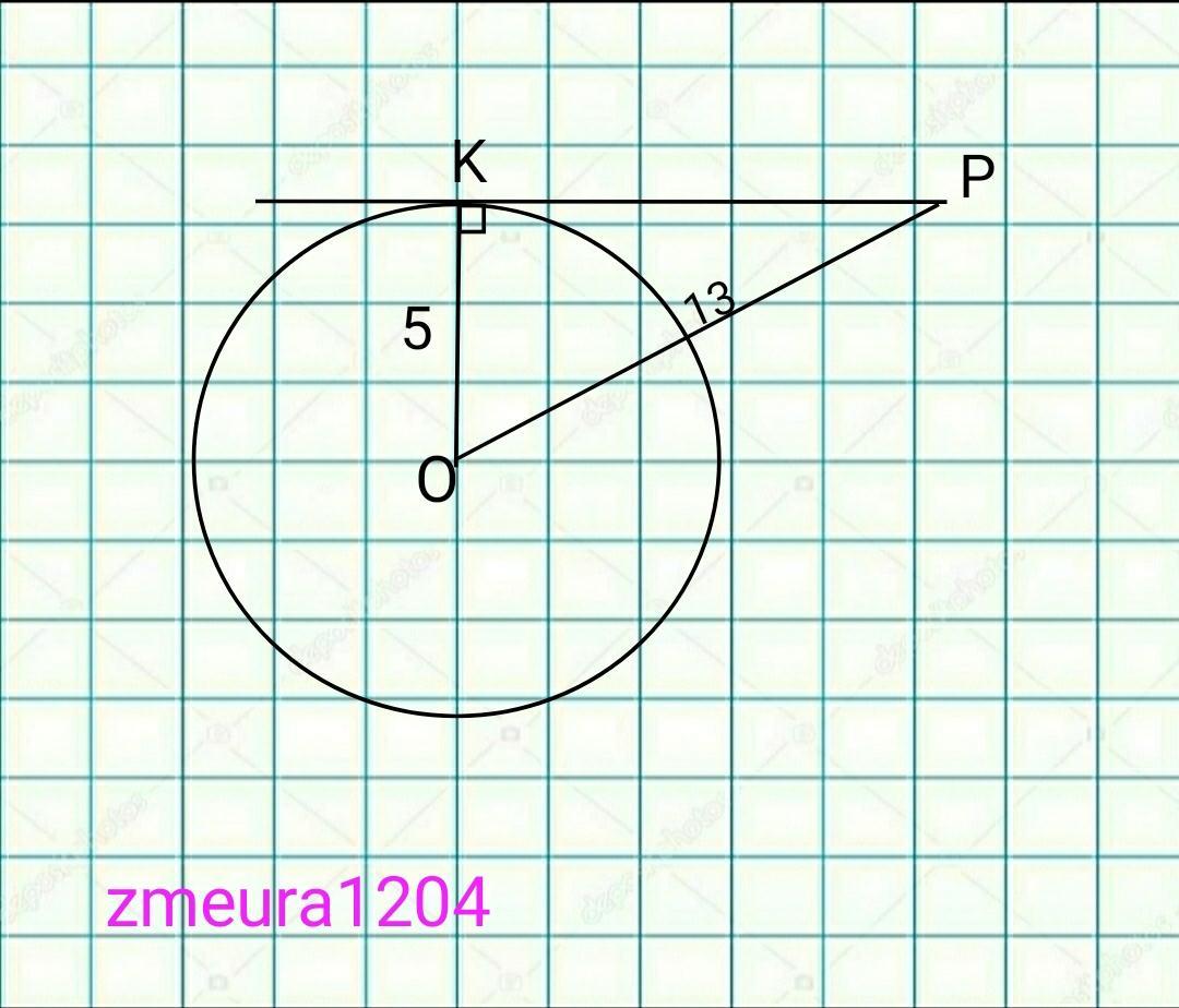 РК=√(РО²-ОК²)=√(13²-5²)=√(169-25)=