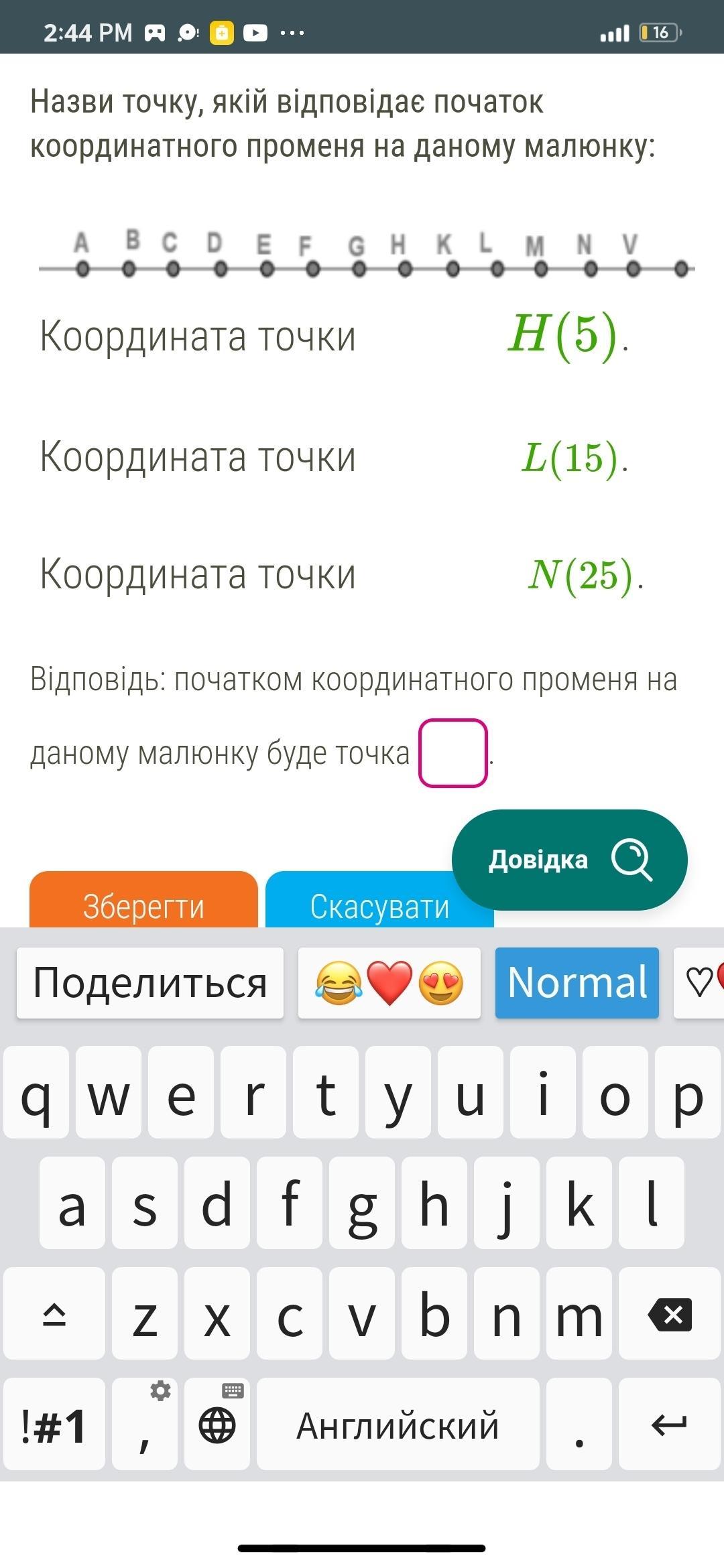 одиничний відрізок координатного променя = 5, отже 0 буде на 1 одиничний відрізок лівіше H, тобто на G