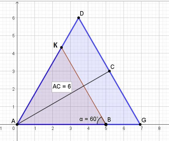 Из точки С проводим прямую, параллельную ВК до пересечения с продолжением стороны АК.