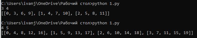 A = [[ij + i * n for i in range(m)] for j in range(n)]