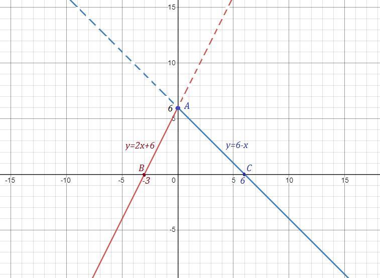 2) у = - х + 6 ; С( 0 ; 6 ) і D( 6 ; 0 ) . Проводимо промені СВ і CD .