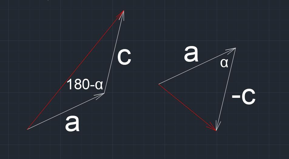 Тогда модули суммарных векторов можно найти по теореме косинусов и получим равенство