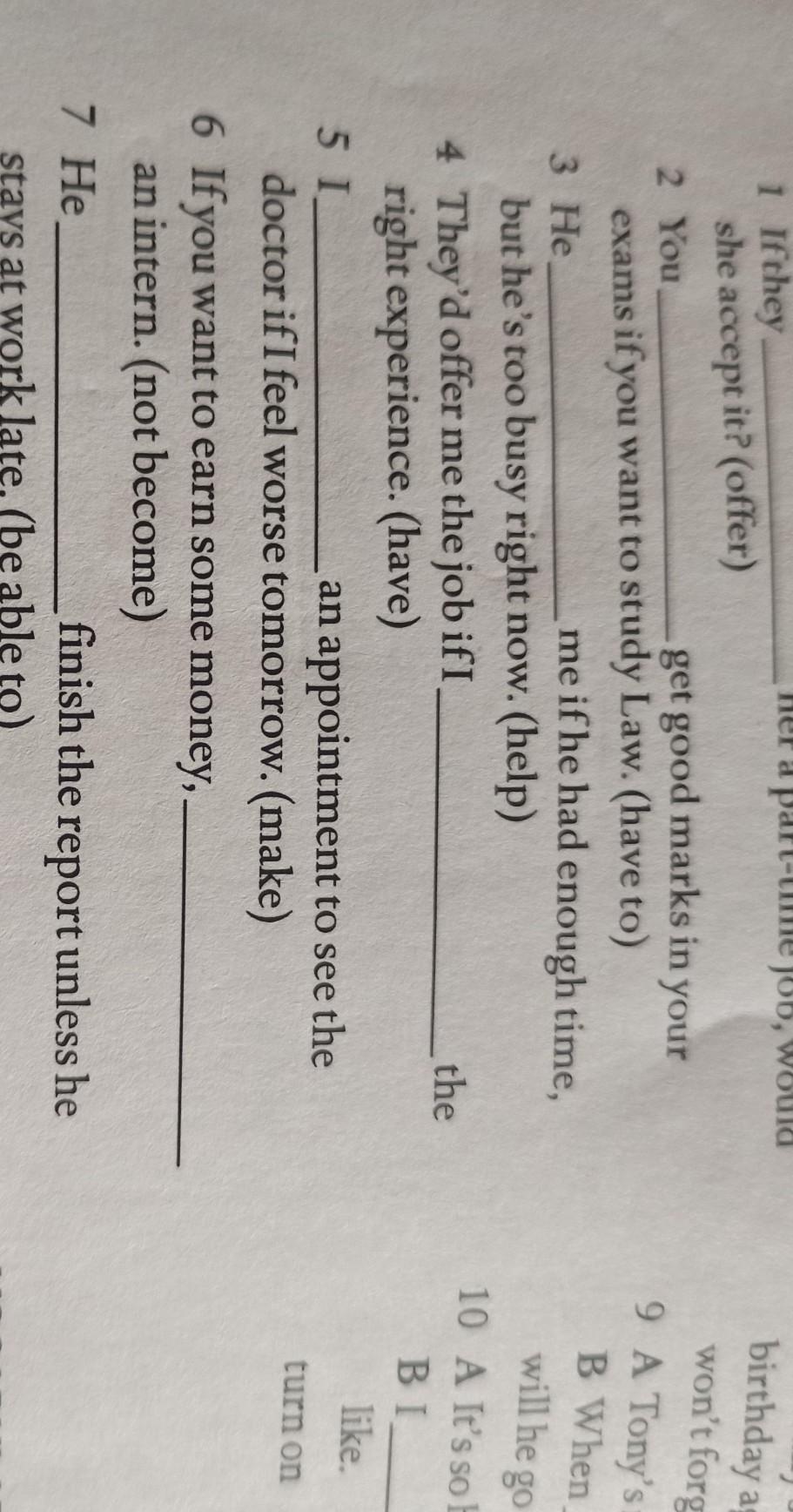 в 7 нужно отрицание. Он не сможет закончить отчет/доклад, если только не задержится на работе