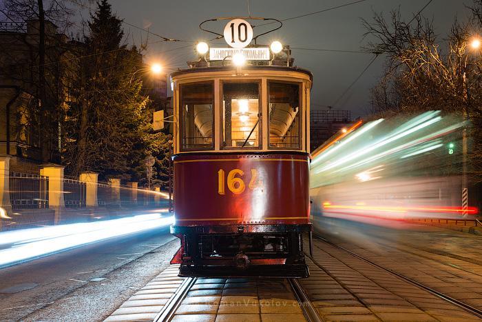 Один трамвайчик решил попутешествовать по ночному городу. Он выехал из ворот парка и отправился по улицам...