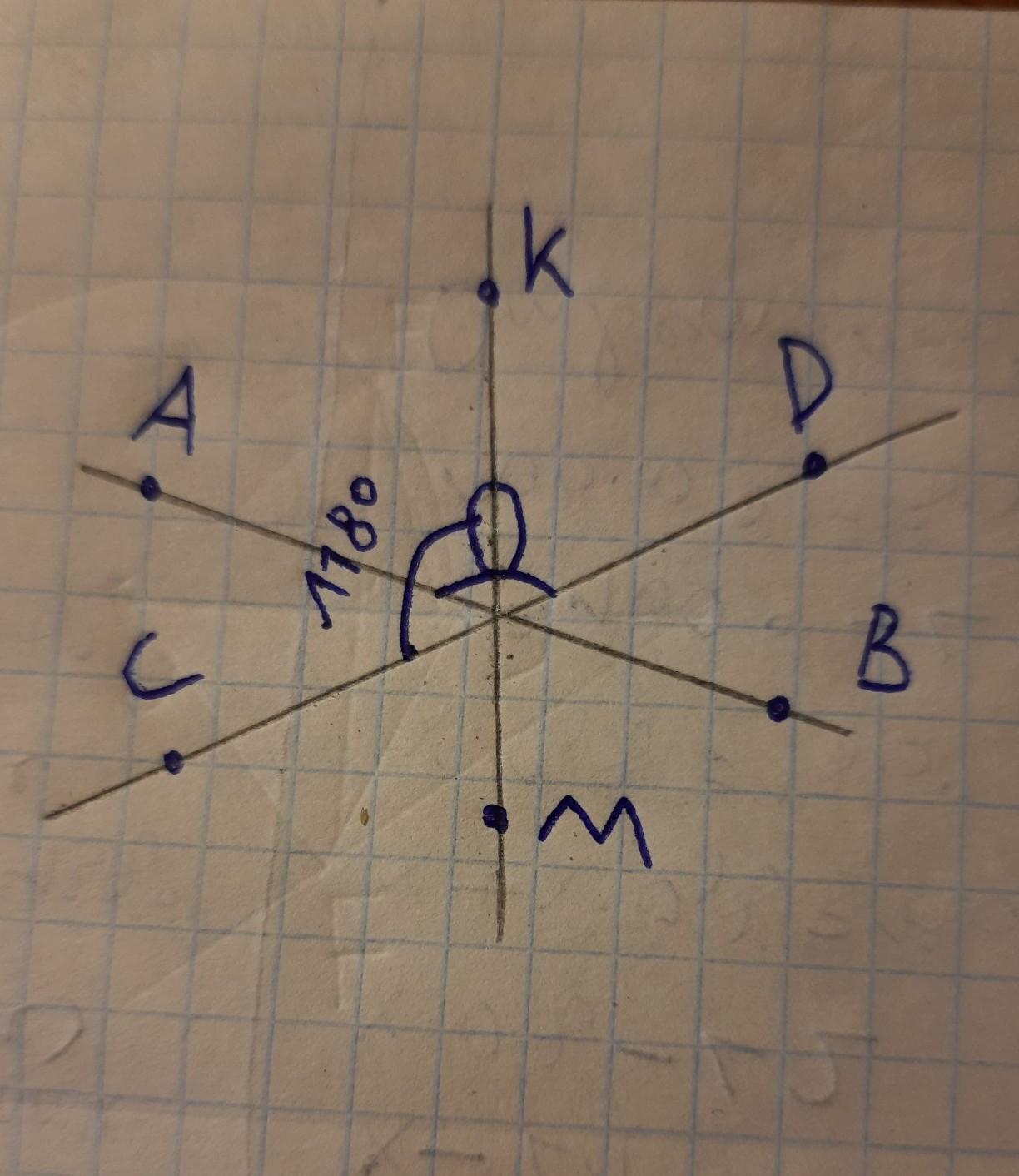 < MK = 180° . Значит < COM = 180° - 118° = 62° .