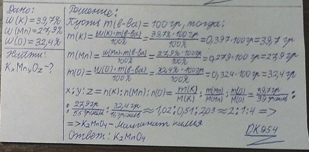 3. Определите простейшую формулу соединения, в со ставе которого массовые доли (%) атомов К, Mn и О соот ветственно равны 39,7%; 27,9% и 32,4%