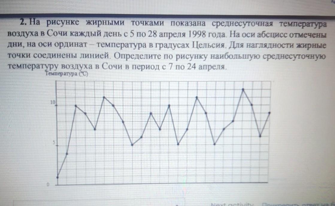 Из графика видно, что наибольшая среднесуточная температура воздуха в период с 7 по 24 апреля составляла 11 °C.