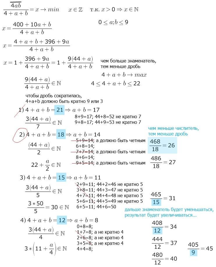 Какое наименьшее значение может принимать это отношение, если его первая цифра равна 4?