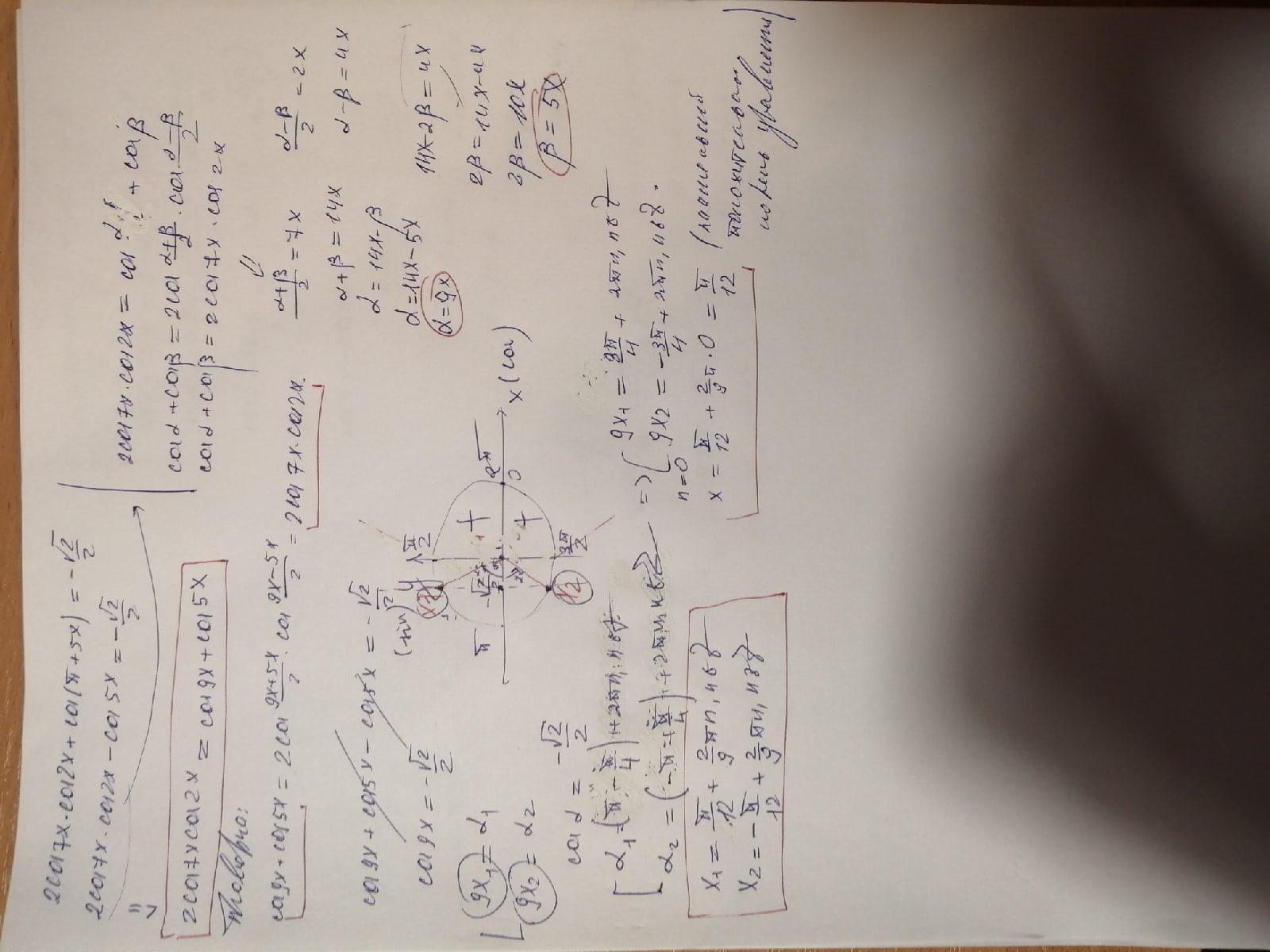 2·0,5(cos9x+cos5x)+(-cos5x)=-√2/2